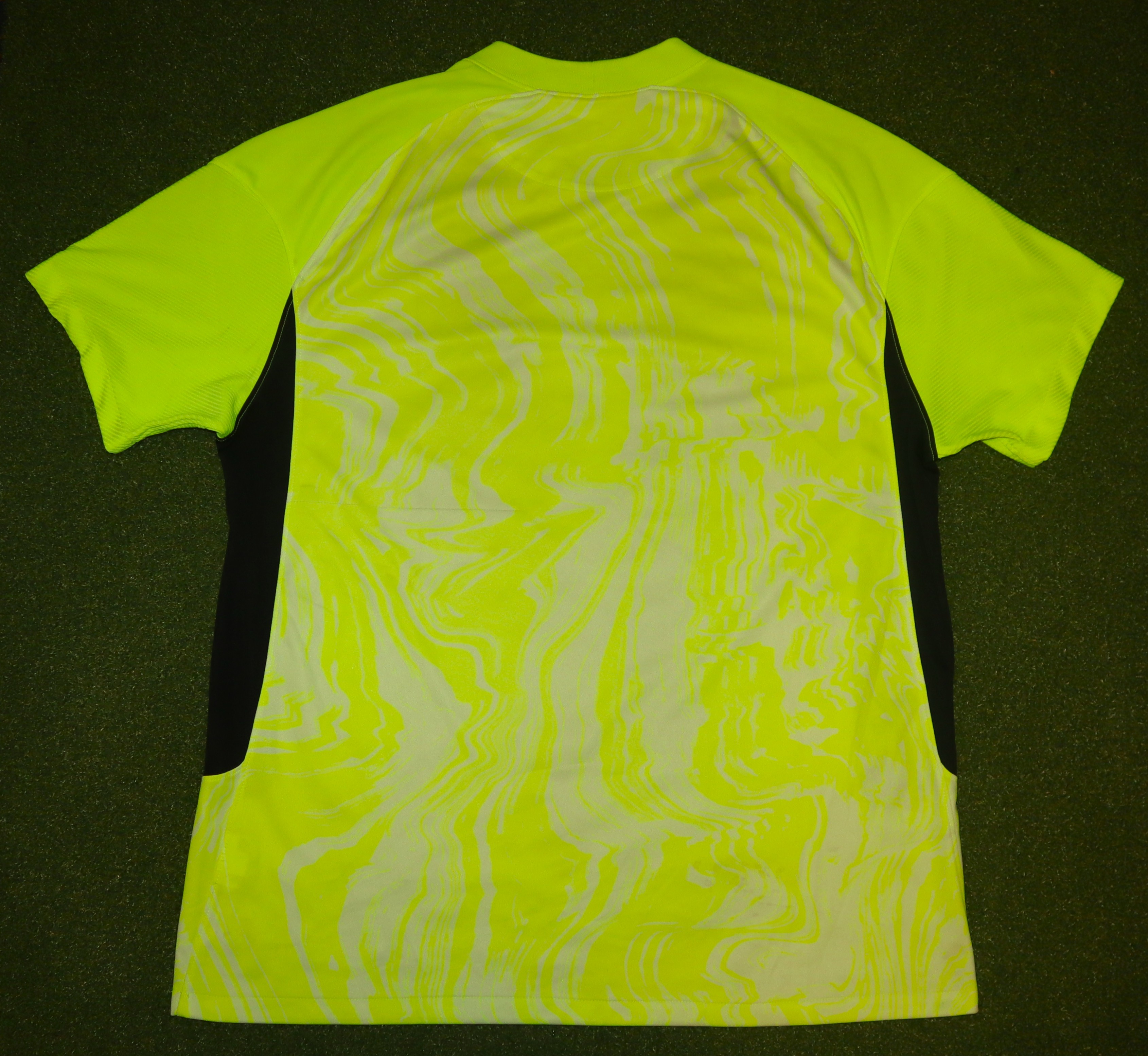 Manufactured by Nike, using their Dri-Fit fabric. The shirt comes in an XL size. This product is recycled. The shirt is considered to be in excellent condition. However it looks like there are a few small stains that need to be washed out.