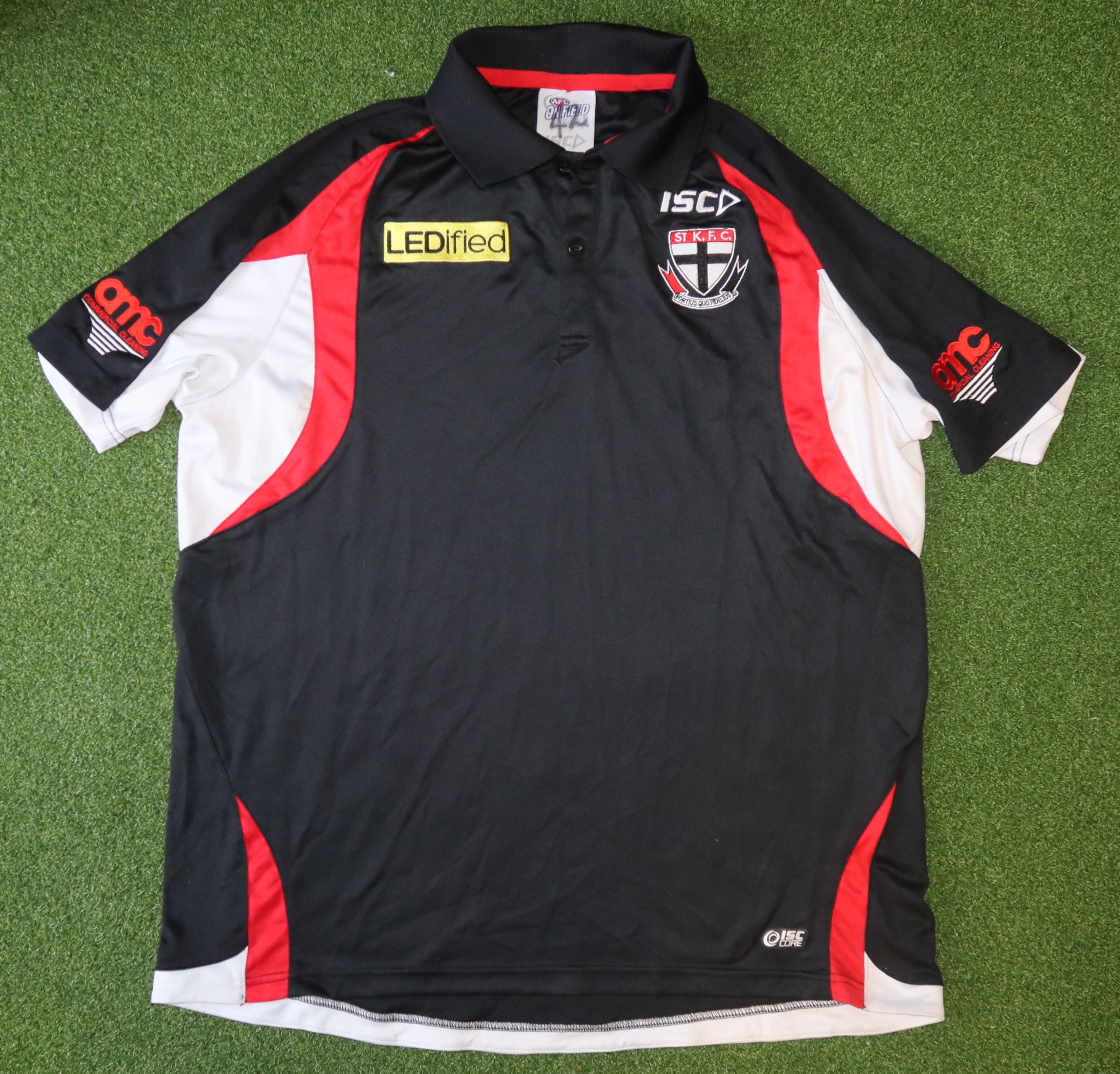 Manufactured by ISC. The polo shirt comes in XL size and is from the AFL On-Field range.